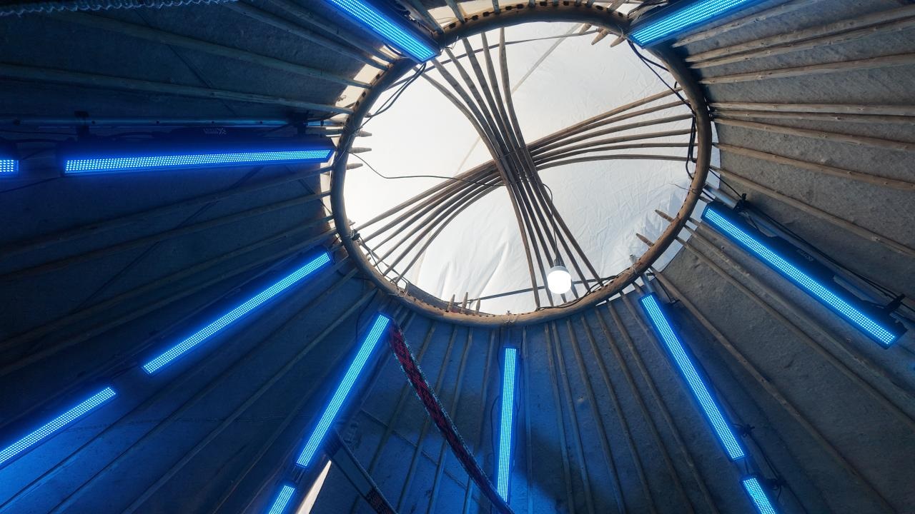 Всё внутреннее пространство юрты оснащено современными LED-панелями, создающими полное ощущение цифрового погружения и визуального интерактива для каждого посетителя.